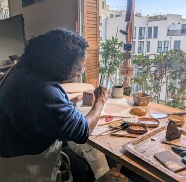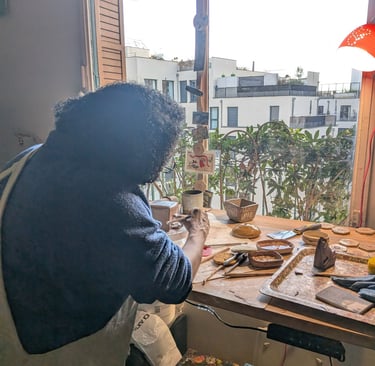 Déroulement de l'atelier, après un accueil chaleureux avec un petit thé ou café, gâteaux et échanges, une présentation de l'atelier/poterie et démonstration.